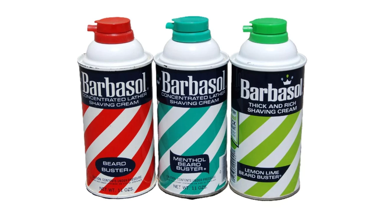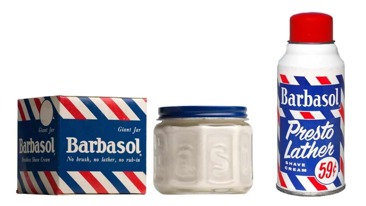 Over the years, Barbasol has been sold in a variety of packaging types and sizes. The Giant Jar was originally sold for 75¢. The introduction of aerosol cans in the 1950s prompted a change in the Barbasol formula from a thick cream into a soft, fluffy foam similar to what is currently seen on shelves. The iconic barbershop pole design on the first aerosol cans remains a signature trademark for the brand.