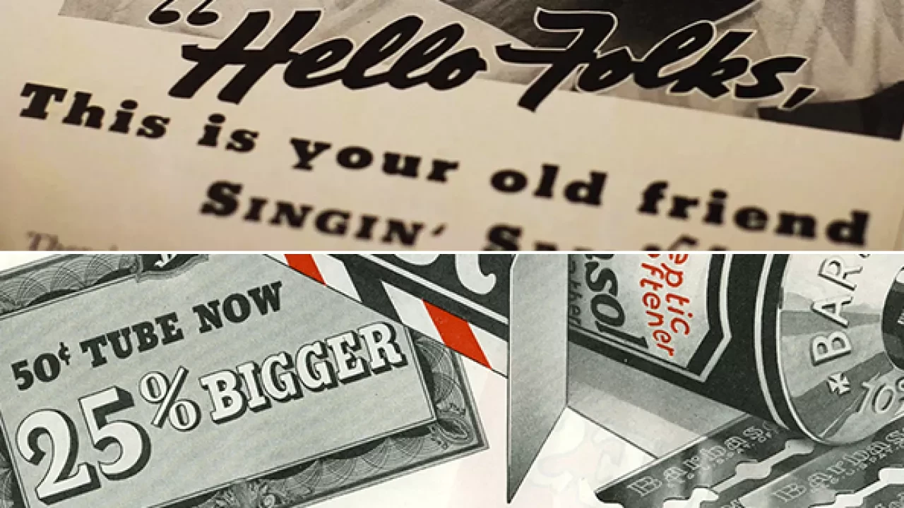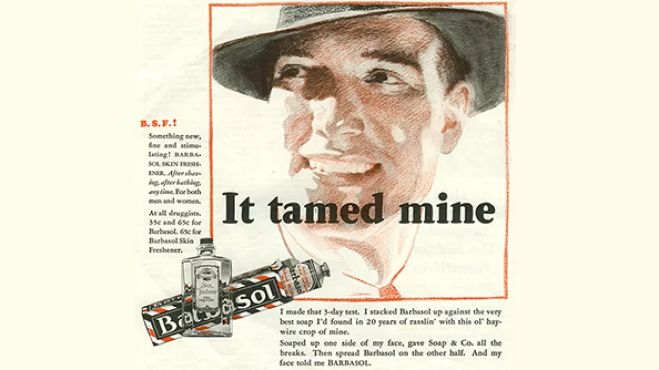 Product endorsements from famous male celebrities of the 1920-1930s, including athletes, actors and musicians ran in a series of ads in the Saturday Evening Post. The ads featured personal quotes from the men, explaining why they enjoyed shaving with Barbasol.